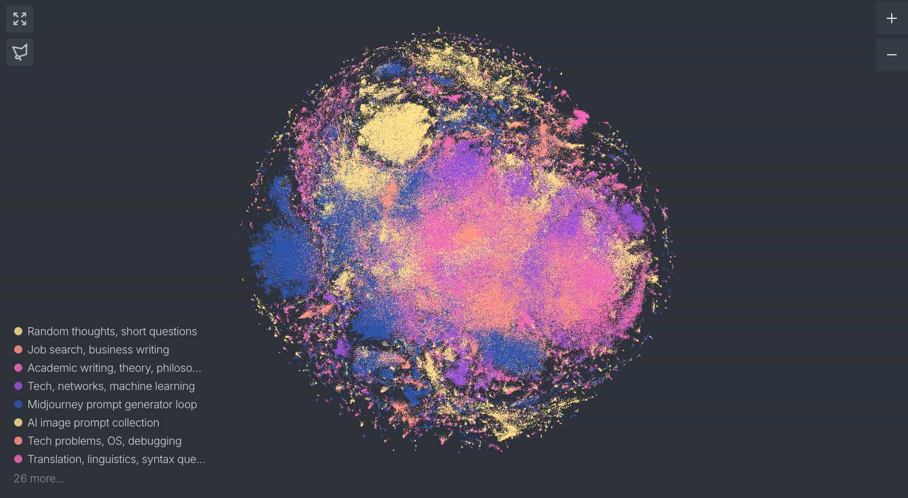 One million real-world LLM conversations displayed on a massive temporal graph. Identify common topics, anomalies, and how they change over time.